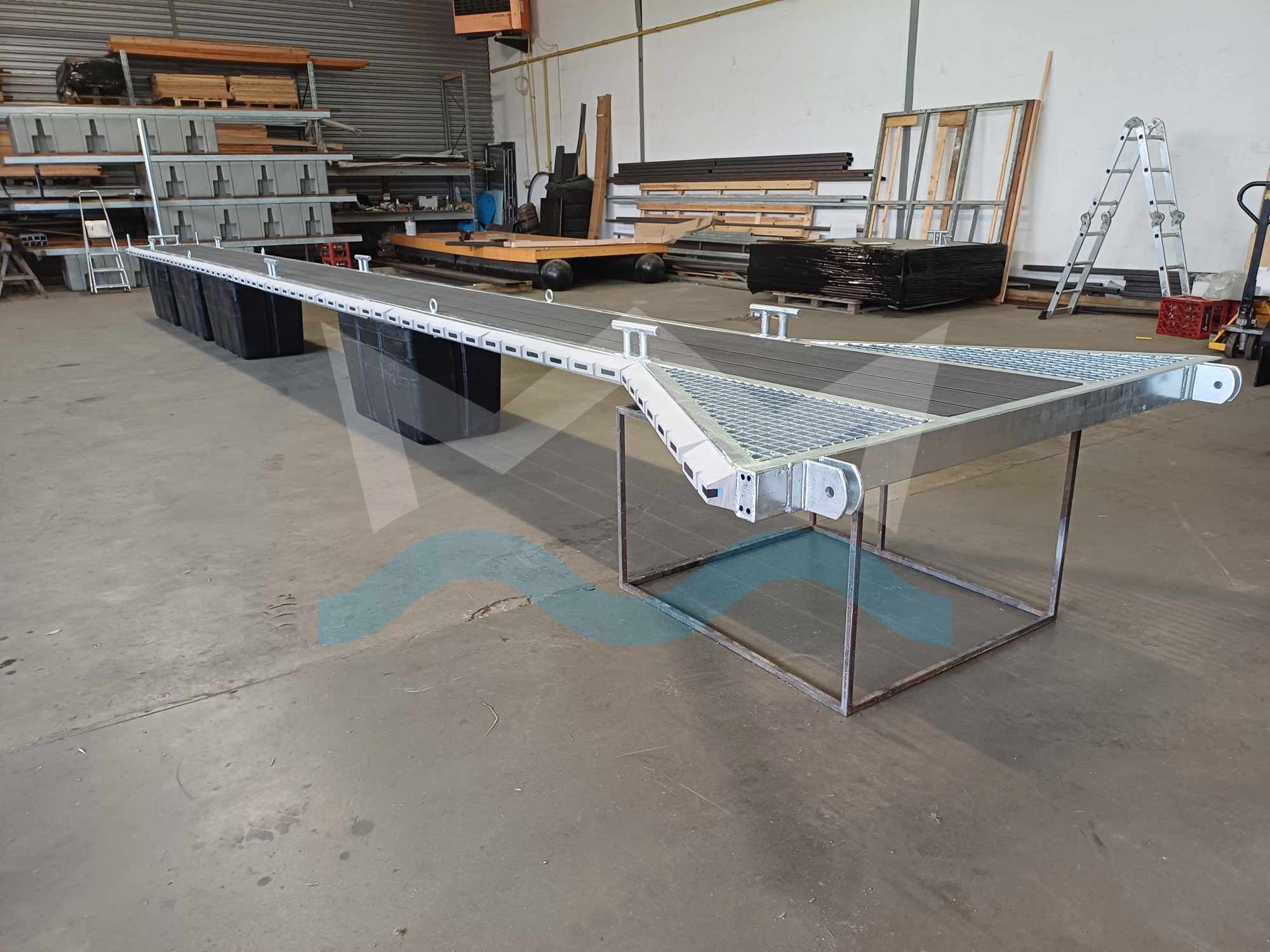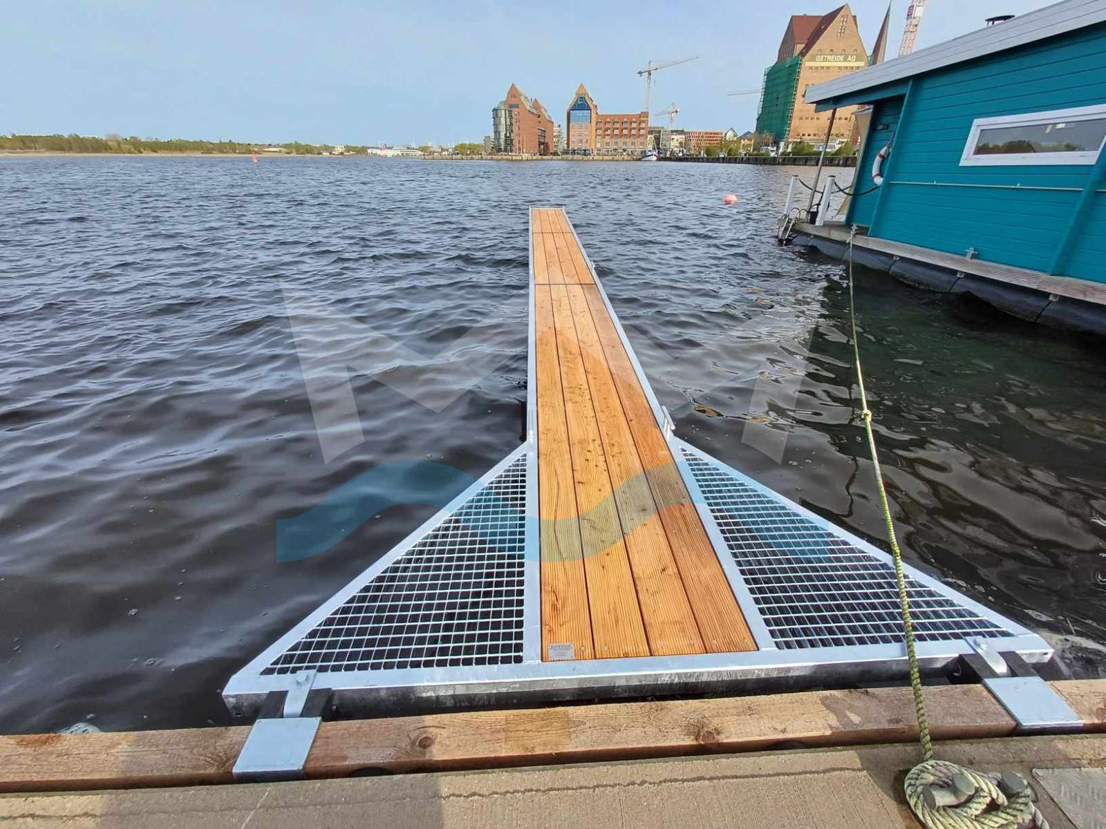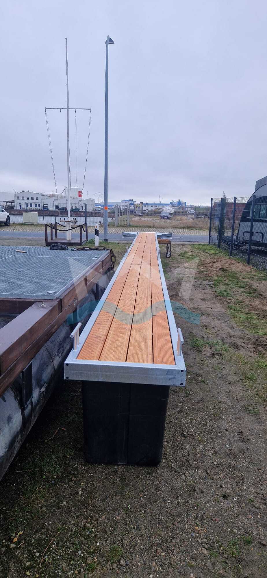 Wir bieten auch Anlegestege mit WPC, WEMA- oder GFK-Gitterrosten an (bitte kontaktieren Sie uns für ein Angebot).